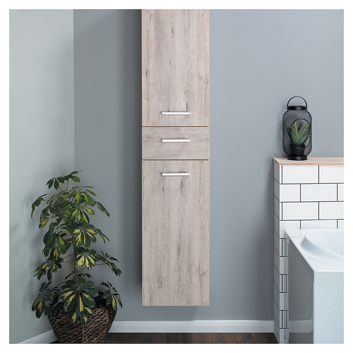 Пенал Dreja 77.0304D в современном стиле дополнит интерьер любой ванной комнаты. Отличительной особенностью данной мебели является возможность как напольной, так и подвесной установки. Корпус выполнен из ЛДСП с покрытием эко-шпон, которое характеризуется стойкостью к небольшим механическим повреждениям и простотой в уходе. Фасады изготовлены из высококачественной МДФ, которая обеспечивает изделию привлекательный внешний вид, а также износостойкость и долговечность. Ножки и набор крепежей для монтажа на стену в комплект поставки не входят и приобретаются отдельно. Комплектация: