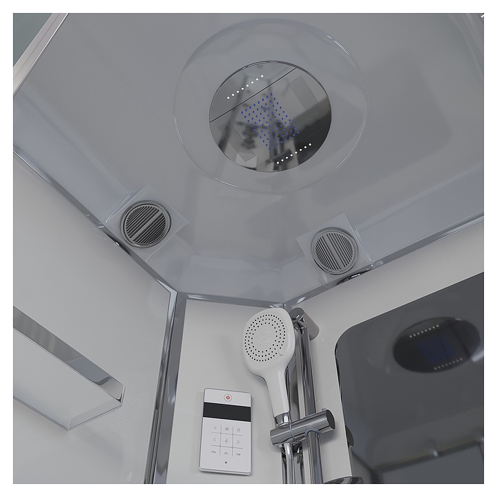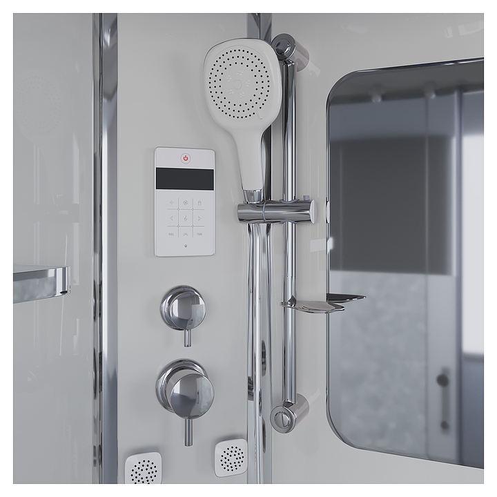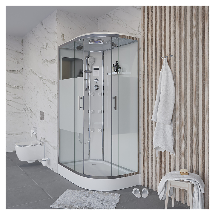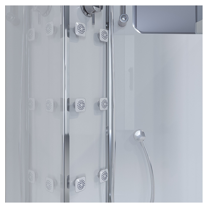 Душевая кабина Niagara Ultra NG-303-01L предназначена для использования в ванных комнатах. Благодаря изящной форме и изысканному дизайну кабина станет украшением ванной комнаты, а угловая конструкция ассиметричной формы легко впишется на небольшой площади. Душевая кабина оснащена 2х секционными раздвижными дверями, крышей, верхнем душем, пультом управления с радио, гидромассажем, зеркалом и полочкой. Профиль изготовлен из анодированного алюминия в хроме, двери из закаленного прозрачного стекла с матовой линией, задняя стенка и центральная панель - из белого закаленного стекла. Комплектация: