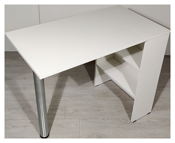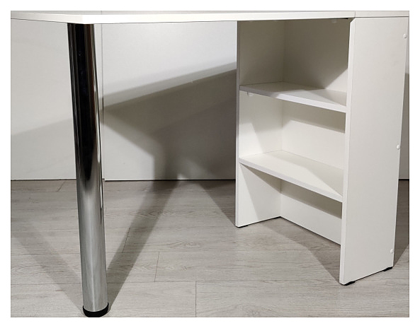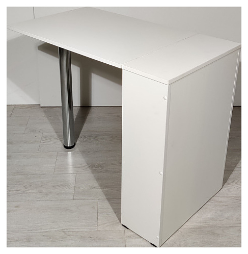 Маникюрный стол PANDA 100 складной предназначен для обустройства рабочего пространства мастера маникюра в косметологических центрах, салонах красоты и домашних студиях ногтевого сервиса. Модель оснащена столешницей, цилиндрической опорой и встроенной тумбой с открытыми полками. Столешница и тумба изготовлены из ЛДСП, опора - из хромированного металла. Особенности: