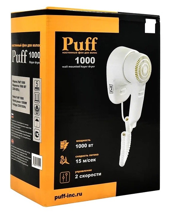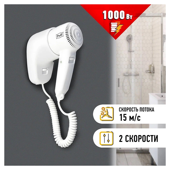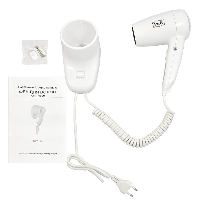 Настенный фен Puff-1000 предназначен для быстрой сушки и комфортной укладки в спорткомплексах, фитнес-центрах, бассейнах, отелях, гостиницах, частных домах и квартирах. Модель оснащена кнопкой включения и выключения и 1 режимом сушки по скорости и температуре. Корпус выполнен из ударопрочного ABS-пластика. В комплект поставки входят крепления. Особенности: