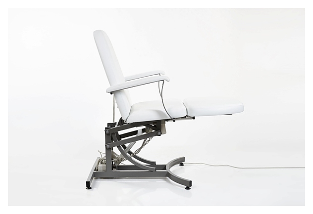 Косметологическое кресло Имидж Мастер ЭЛЕКТРА 3 предназначено для комфортного размещения клиента при проведения процедур маникюра, педикюра, спа-процедур, косметического и лечебного массажа в салонах красоты и косметологических центрах. Модель оснащена устойчивым основанием на подпятниках, 3 электроприводами, удобным ложементом с мягкими сиденьем, спинкой, ножной секцией, расскладными подлокотниками с мягкими накладками и пультом управления. Обивка выполнена из качественной экокожи, каркас – из металла с хромированным покрытием и многослойной фанеры, наполнитель – эластичный пенополиуретан. Особенности: