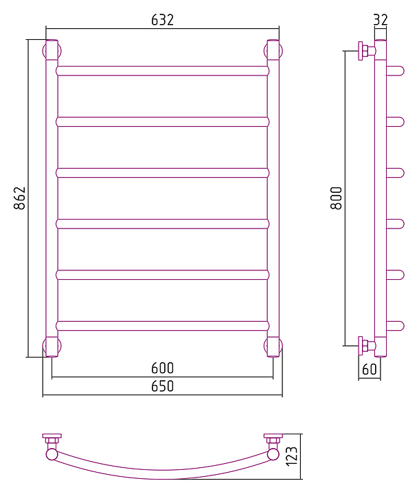 Полотенцесушитель водяной Сунержа Галант+ 80x60 см без покрытия