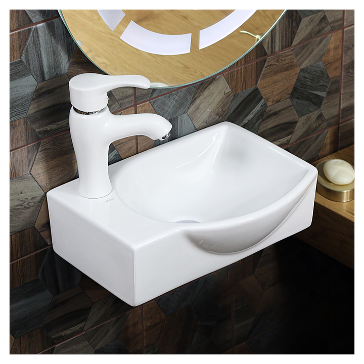 Раковина MELANA MLN-78404R выполнена в современном стиле и отлично впишется в интерьер любой ванной комнаты. Благодаря подвесной конструкции изделие не занимает много места, а закругленные углы обеспечивают легкий уход. Смеситель в комплект поставки не входит и приобретается отдельно. Особенности: