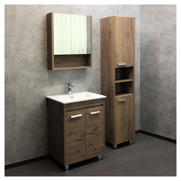 Зеркальный шкаф Comforty Марио-60 дополнит интерьер ванной комнаты. За счет подвесной конструкции изделие не занимает много места, что позволяет экономить пространство, а также облегчает уборку. Модель оснащена открытой полкой в нижней, распашной дверцей и полкой внутри. Корпус выполнен из влагостойкой ЛДСП. Дополнительные характеристики: