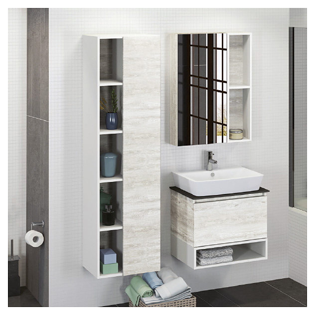 Зеркальный шкаф Comforty Прага-60 дополнит интерьер ванной комнаты. За счет подвесной конструкции изделие не занимает много места, что позволяет экономить пространство, а также облегчает уборку. Модель оснащена открытой полкой в боковой части и дверцей. Изделие выполнено из влагостойкой ЛДСП. Дополнительные характеристики: