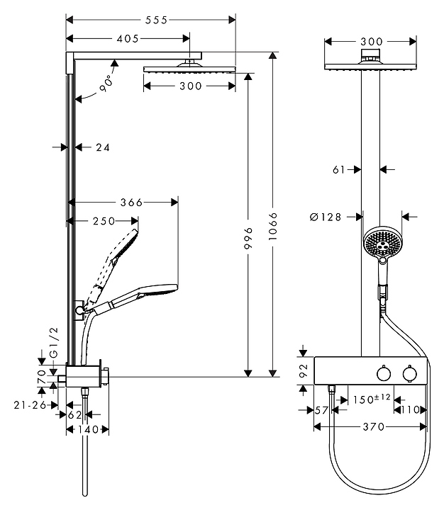 Комплект душевой термостат Hansgrohe Raindance E 27361000