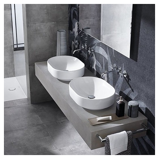 Раковина Geberit VariForm дополнит интерьер любой ванной комнаты. Накладная конструкция обеспечивает простую установку, экономит место и обеспечивает изящный внешний вид. Изделие выполнено из фарфора, который обладает повышенной прочностью, устойчив к негативным внешним факторам, таким как грязь и запахи, а также способен долгое время сохранять идеальную белизну. Особенности: