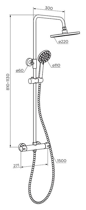 Стойка душевая с термостатом Dorff New plus D0710400 хром