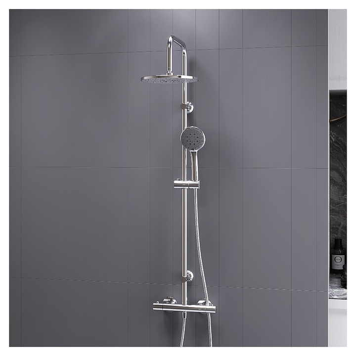 Душевая стойка Dorff New plus D0710400 выполнена в современном стиле и предназначена для использования в ванных комнатах. Модель оснащена круглым верхним тропическим душем, круглым ручным душем и душевым шлангом с защитой от перекручивания, душевой штангой и регулируемым по высоте держателем для ручной лейки, а также термостатическим картриджем, обеспечивающим поддержание необходимой температуры в независимости от давления воды. Комплектация: