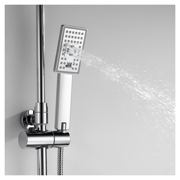 Душевая система Wasserkraft A17702 предназначена для использования в ванных помещениях для подачи горячей и холодной воды. Модель оснащена смесителем для ванны с коротким изливом, круглым верхним тропическим душем с насадкой "Ливневый дождь", регулируемой по высоте стойкой для душа, круглой трехфункциональной ручной лейкой с системой защиты от известковых отложений и шлангом, керамическим картриджем, обеспечивающим плавный ход рычага смесителя, контроль и точность при выборе напора и температуры воды, а также аэратором для создания мягкой ровной струи без разбрызгивания. Изделие выполнено из высококачественной латуни, отличающейся прочностью, долговечностью и устойчивостью к перепадам температур, верхний душ - из ABS-пластика, шланг - из металла. Особенности: