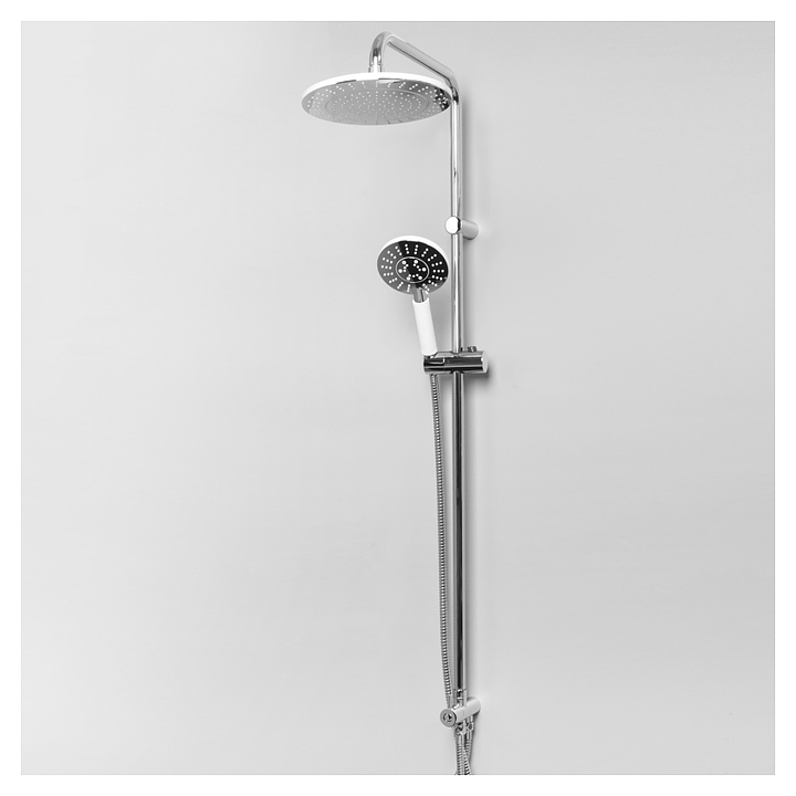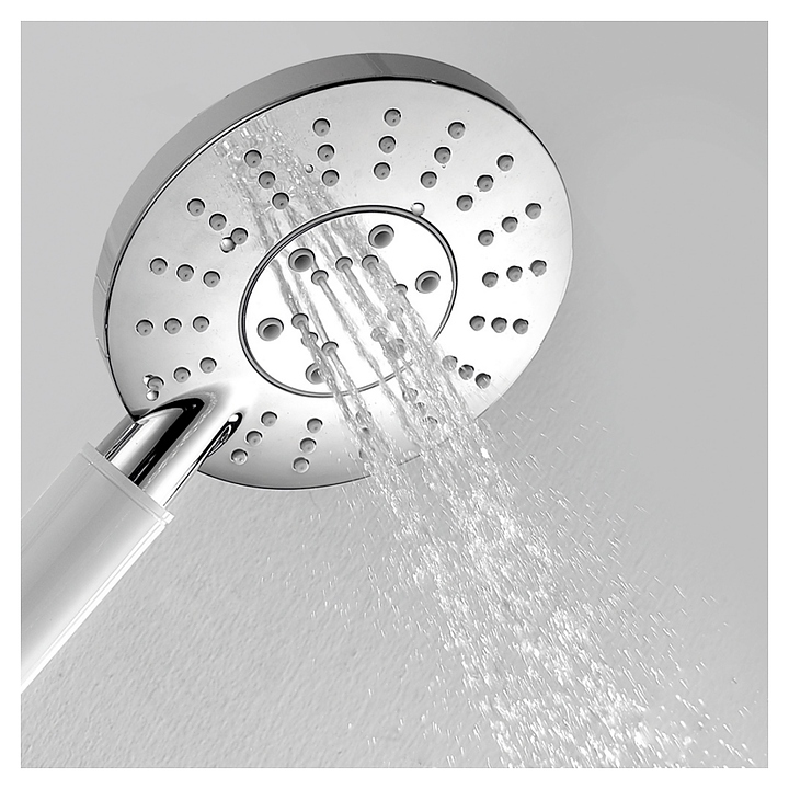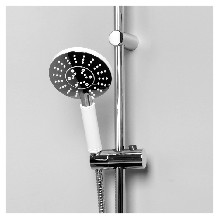 Душевая система Wasserkraft A039 предназначена для использования в ванных помещениях для подачи горячей и холодной воды. Модель оснащена круглым верхним тропическим душем с насадкой "Ливневый дождь", стойкой для душа, круглой трехфункциональной ручной лейкой с системой защиты от известковых отложений, душевым шлангом и регулируемым держателем ручного душа. Изделие выполнено из высококачественной латуни, отличающейся прочностью, долговечностью и устойчивостью к перепадам температур, верхний душ - из ABS-пластика, шланг - из металла. В комплект поставки входят верхний душ, стойка, ручной душ, душевой шланг, держатель для ручного душа и металлический шланг для подключения к смесителю. Смеситель в комплект поставки не входит и приобретается отдельно. Особенности: