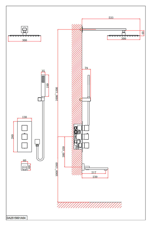 Душевая система D&K Bayern.Liszt DA2515607A04 предназначена для использования в ванных помещениях для подачи горячей и холодной воды. Модель оснащена встроенным термостатическим картриджем, обеспечивающим поддержание необходимой температуры в независимости от давления воды, изливом для наполнения ванны, душевым гарнитуром, включающим в себя тропический верхний душ, ручную лейку с металлическим душевым шлангом с защитой от перекручивая и держатель для ручной лейки. Изделие выполнено из высококачественной латуни, отличающейся прочностью, долговечностью и устойчивостью к перепадам температур. В комплект поставки входят смеситель, встраиваемая часть, излив, держатель ручного душа, ручная лейка, держатель верхнего душа, тропический верхний душ и душевой шланг, Особенности:
