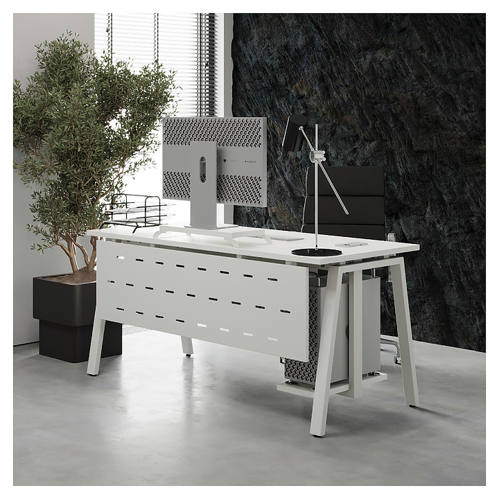 Компьютерный стол Кобор KA-140/70 white/premium используется в офисных помещениях и кабинетах руководителей. Модель оснащена A-образными опорами. Каркас выполнен из металла, выкрашенного в цвет белый муар (RAL9016), столешница – из ламинированной древесно-стружечной плиты (ЛДСП) цвета белый премиум (W1000 ST9). Опции (заказываются отдельно):