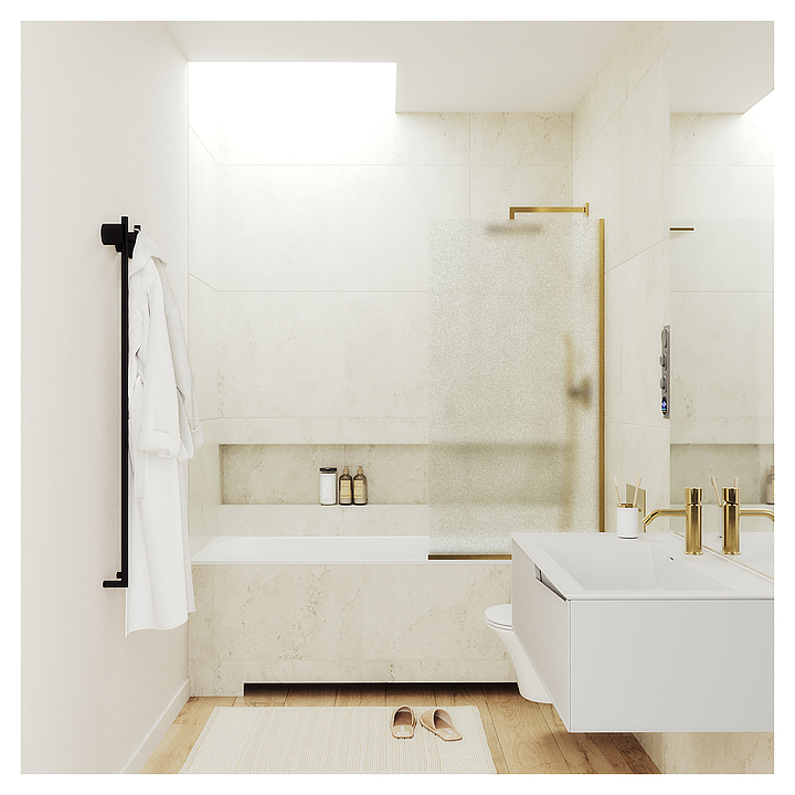Шторка на ванну MaybahGlass MGV-95-3у 90х140 см, сатин, золото