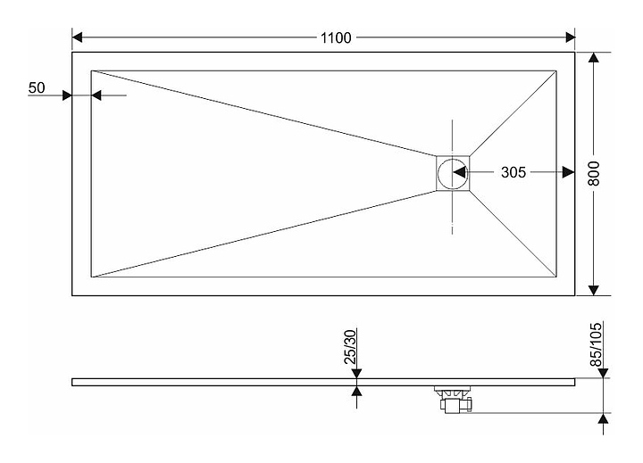 Поддон душевой Grossman Strong GR-S180110Q 80х110 см, камень