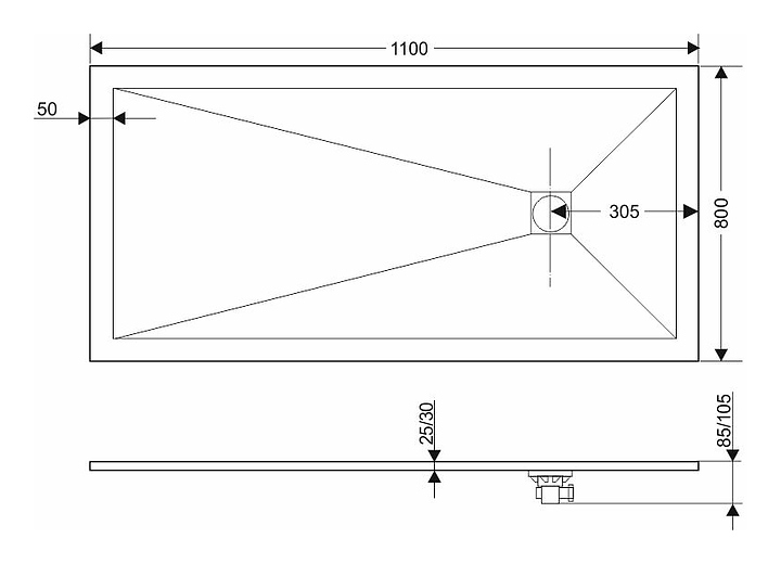 Поддон душевой Grossman Strong GR-S280110Q 80х110 см, камень