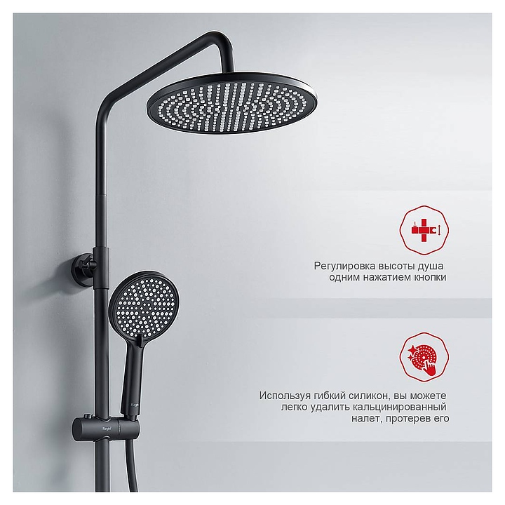 Душевая система Raglo R31.24.06 предназначена для подачи горячей и холодной воды в ванных помещениях. Модель оснащена регулируемой по высоте душевой штангой, круглыми верхним душем и ручной лейкой. Керамический картридж обеспечивает плавный ход рычага смесителя, контроль и точность при выборе напора и температуры воды. Излив оснащен аэратором, который создает мягкую струю без брызг. Изделие выполнено из высококачественной латуни, отличающейся прочностью, долговечностью и устойчивостью к перепадам температур, шланг - из ПВХ, аэратор - из силикона. В комплект поставки входят верхний душ, душевая штанга с держателем лейки, ручной душ, смеситель и шланг. Особенности: