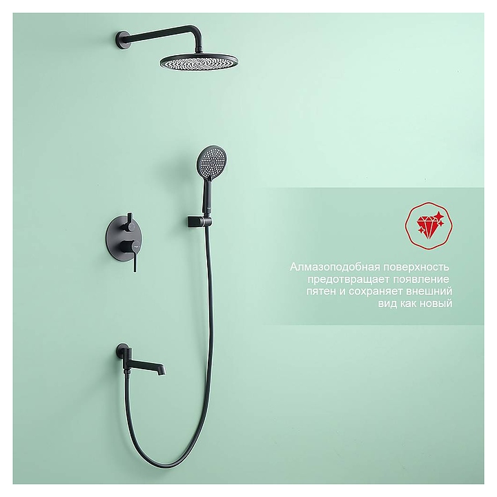 Душевой комплект Raglo R20.27.06 используется в ванных комнатах. Модель оснащена традиционным изливом и круглыми верхним душем и ручной лейкой. Керамический картридж обеспечивает плавный ход рычага смесителя, контроль и точность при выборе напора и температуры воды. Излив оснащен аэратором, который создает мягкую струю без брызг. Изделие выполнено из высококачественной латуни, отличающейся прочностью, долговечностью и устойчивостью к перепадам температур, шланг - из ПВХ, аэратор - из силикона. В комплект поставки входят смеситель, внутренняя часть, шланговое подключение с держателем лейки, душевой шланг, верхний душ с кронштейном и излив. Особенности: