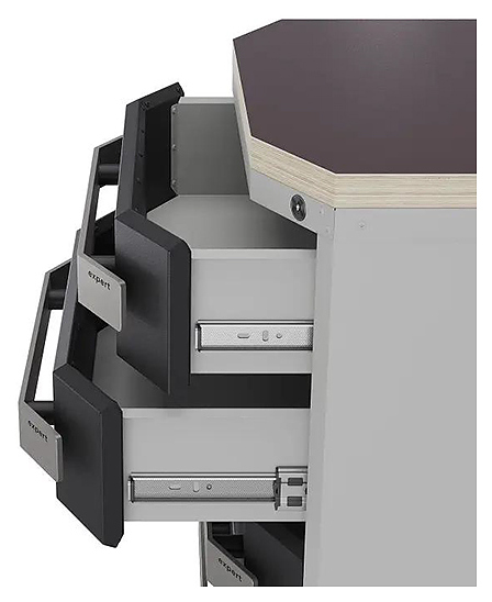 Тумба Кобор Expert MTM/3-70/64 80B предназначена для выполнения сборочных, ремонтных, слесарных, монтажных и других видов работ на производстве, в сервисных центрах, мастерских, гаражах и в образовательных учреждениях для практических занятий. Модель оснащена 8 выдвижными ящиками, которые гарантируют комфортное использование и позволяют хранить необходимые инструменты и материалы на рабочем месте. Столешница выполнена из ламинированной столешницы и покрыта листом окрашенной стали. Особенности: