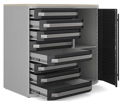 Тумба Кобор Expert MTM/4-100/64 2S.80B предназначена для выполнения сборочных, ремонтных, слесарных, монтажных и других видов работ на производстве, в сервисных центрах, мастерских, гаражах и в образовательных учреждениях для практических занятий. Модель оснащена 2 полками и 8 выдвижными ящиками, которые гарантируют комфортное использование и позволяют хранить необходимые инструменты и материалы на рабочем месте. Столешница выполнена из ламинированной фанеры, покрытой листом окрашенной стали. Особенности: