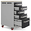 Тумба Кобор Expert TTL/1-50/64 41B предназначена для хранения и транспортировки к рабочему месту инструментов и приборов, необходимых для работы на сервисных и слесарных участках, в цехах заводов и на промышленных предприятиях. Модель оснащена ложементом с прорезиненными бортиками, а также 5 выдвижными ящиками, которые гарантируют комфортное использование и позволяют хранить необходимые инструменты и материалы на рабочем месте. Тумба имеет 4 поворотных колеса, обеспечивающих легкое перемещение по производственной зоне и стабильную фиксацию на месте. Корпус выполнен из металла с порошковым покрытием, устойчивым к механическим и химическим воздействиям. Особенности: