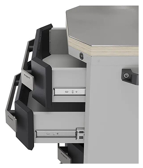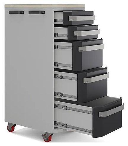 Тумба Кобор Expert TTL/3-50/64 23B предназначена для хранения и транспортировки к рабочему месту инструментов и приборов, необходимых для работы на сервисных и слесарных участках, в цехах заводов и на промышленных предприятиях. Модель оснащена ложементом с прорезиненными бортиками и 5 выдвижными ящиками, которые гарантируют комфортное использование и позволяют хранить необходимые инструменты и материалы на рабочем месте. Тумба имеет 4 поворотных колеса, обеспечивающих легкое перемещение по производственной зоне и стабильную фиксацию на месте. Корпус выполнен из металла с порошковым покрытием, устойчивым к механическим и химическим воздействиям. Особенности: