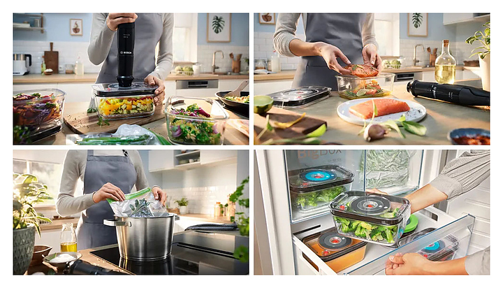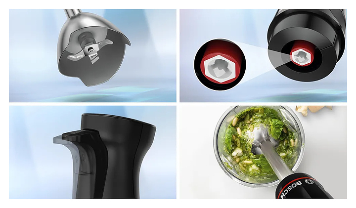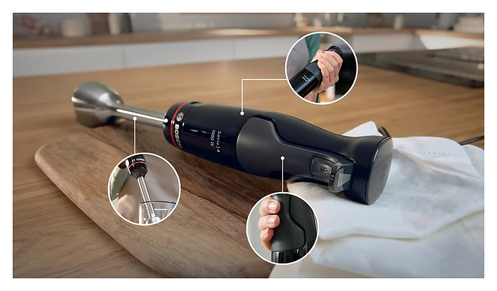 Вакуумный блендер Bosch MSM4B6V2 серии MaxoMixx предназначен для измельчения фруктов, овощей, орехов и трав, а также приготовления соусов, смузи и супов-пюре в домашних условиях. Модель оснащена ножом с 4 лезвиями QuattroBlade, эргономичной ручкой, кнопками и бесступенчатой регулировкой скорости. Насос для вакуумирования, специальные контейнер и пакеты продлевают свежесть продуктов и срок хранения в 2 раза дольше, чем в обычных емкостях. Турбо-режим обеспечивает максимальную мощность за короткое время для быстрого измельчения твердых продуктов и приготовления однородных смесей, коктейлей и пюре. Съемные детали можно мыть в посудомоечной машине. Корпус выполнен из пластика, погружная часть - из нержавеющей стали. В комплект поставки входят мерный стакан, венчик для взбивания, вакуумный насос, вакуумный контейнер и вакуумные пакеты с замком. Дополнительные характеристики: