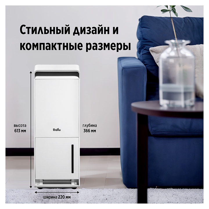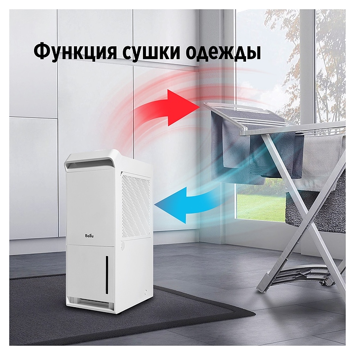 Осушитель воздуха Ballu Neo BDR-35LE используется в офисах, гостиничных номерах и домашних условиях для устранения излишней влаги, сушки одежды и восстановления оптимального уровня влажности. Модель оснащена 3 режимами сушки, цифровым дисплеем, ручкой и шасси для перемещения. Осушитель сохраняет структуру ткани и не деформирует одежду. Функция автоматического отключения и индикатор наполненности бака конденсатом контролируют уровень воды в резервуаре и позволяют избежать протечки и порчи напольных покрытий. Управление c мобильного приложения по Wi-Fi гарантирует комфортную эксплуатацию. Корпус выполнен из пластика. В комплект поставки входит моющийся воздушный фильтр. Особенности: