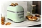 Тостер KitchenAid Artisan 5KMT2204EPT используется в офисах, гостиницах и домашних условиях для обжаривания ломтиков хлеба различных сортов. Модель оснащена 2 слотами для тостов, кабелем питания с вилкой, электромеханической панелью управления с рычажными рукоятками, нажимными функциональными клавишами и светодиодными индикаторами. Литой корпус овального сечения с вершиной обтекаемой формы выполнен из металла и ударопрочного пластика с поверхностью фисташкового оттенка (Pitachio) и декорирован горизонтальной серебристой полосой с логотипом по периметру верхней части, верхняя панель, решетки слотов и решетка для сэндвичей – из нержавеющей стали с глянцевой серебристой поверностью, поддон для крошек – из нержавеющей стали, фурнитура с серебристой поверхностью. Комплектация: